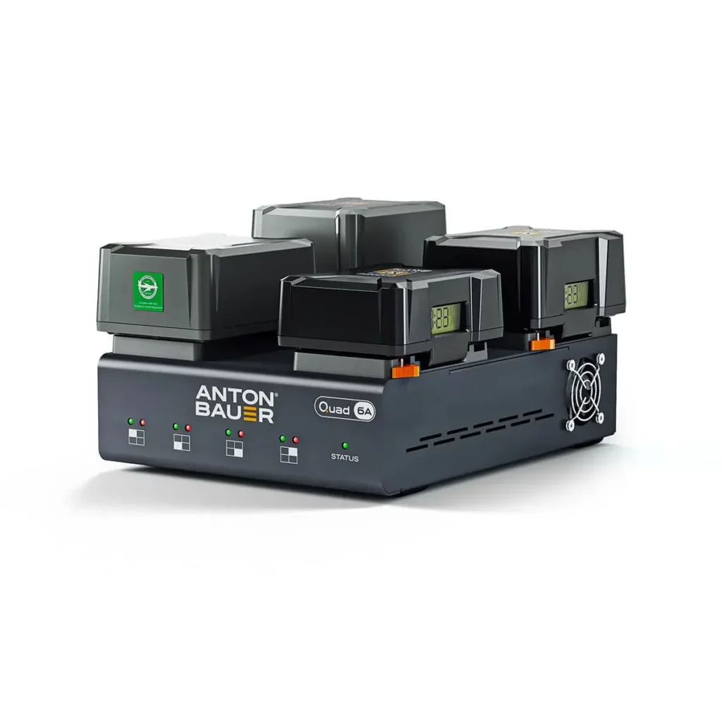 - Protect & Preserve Anton/Bauer’s QUAD 6A charger provides unmatched safety and performance with its unique ‘three-level protection’ system. Designed with multiple layers of isolation, it protects against component failures and ensures uninterrupted operation. Fast-acting fuses and short circuit protection keep your equipment safe, while advanced communication with batteries optimizes each charge for performance and longevity. The controlled ramp-up process and continuous monitoring of battery condition and temperature ensure a seamless, efficient, and safe charging experience