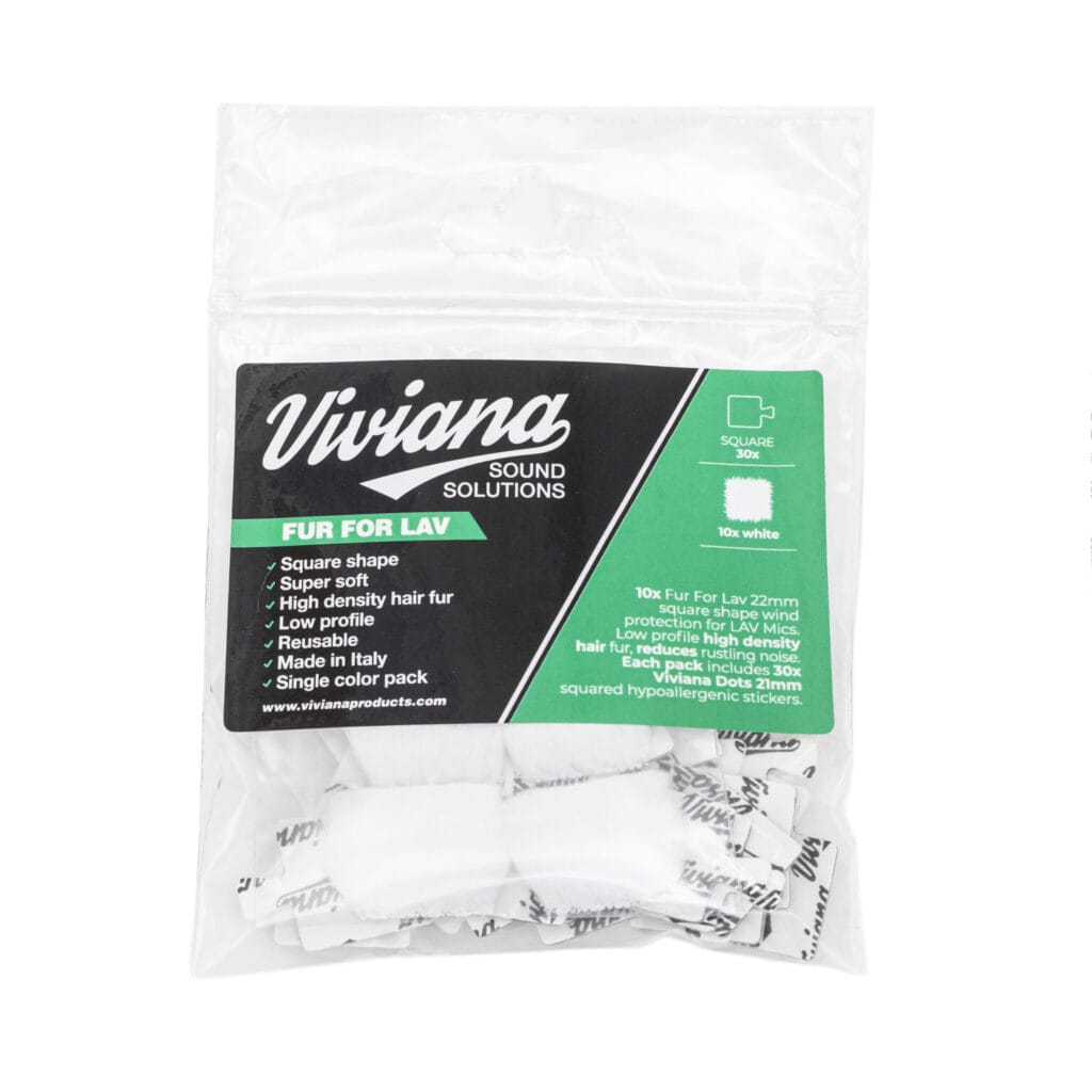 Viviana "Fur For Lav" is a low-profile, super soft, high-density hair fur designed to protect lav mics from wind and reduce rustling noise.