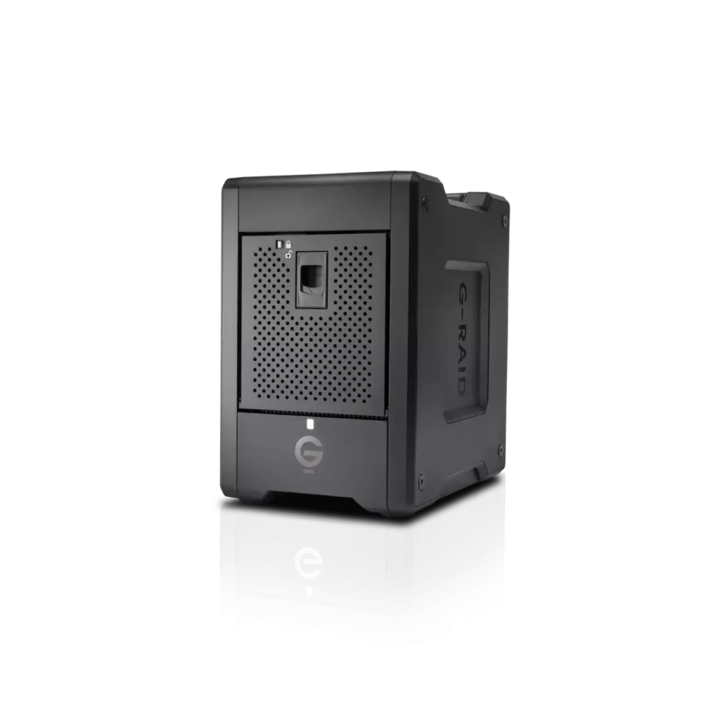 A transportable 8-bay hardware RAID solution, the G-RAID™ SHUTTLE SSD with Thunderbolt™ 3 (40Gbps) and USB-C™ (10Gbps) interfaces offers professionals big capacity and high-powered performance for super-fast access, and real-time video editing. Supports multi-stream 4K, 8K, and VR workflows, RAID 0, 1, 5, 10, and 50 configurations, and provides turbocharged transfer rates up to 2800MB/s read and 2700MB/s write.