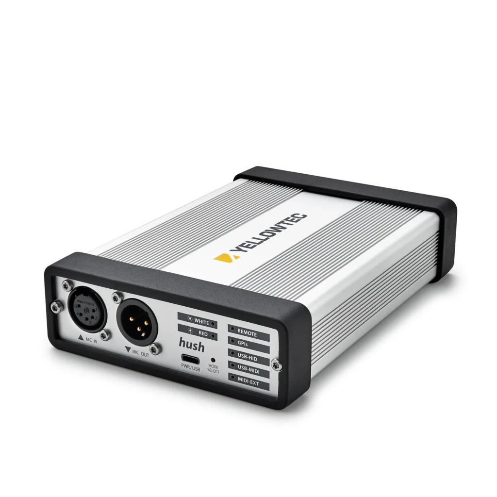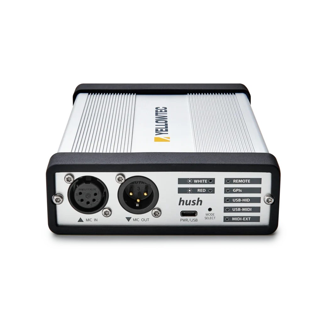 - Control hush via hush Remote, GPIs, USB-HID or MIDI (USB / Ext.)
