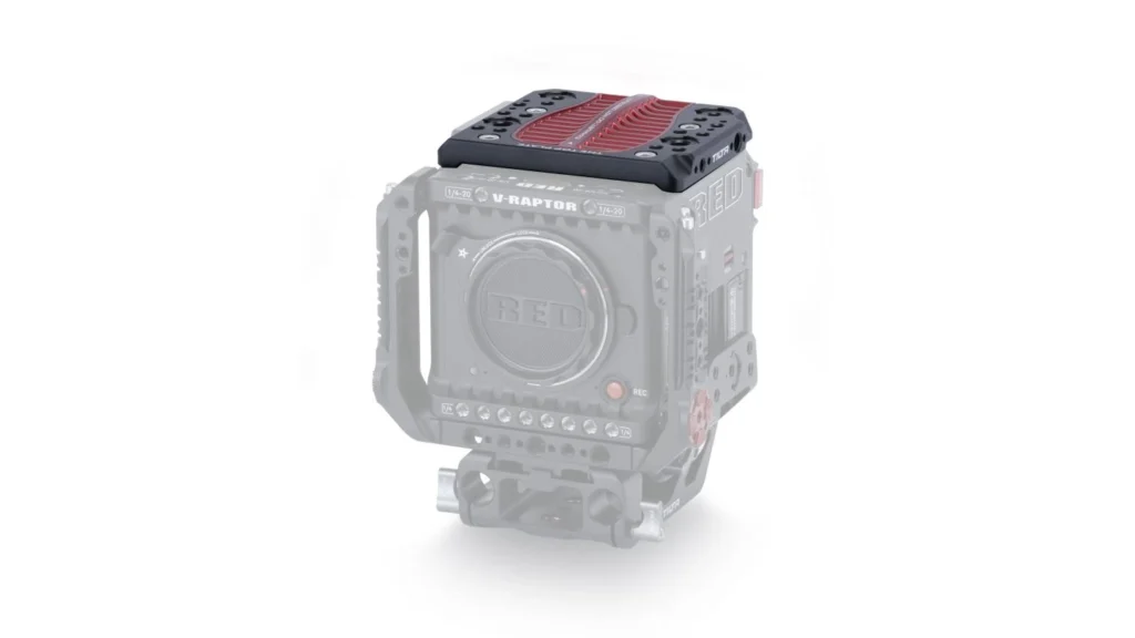 This securely supports a range of different accessories including our new Top Handle for RED V-RAPTOR.