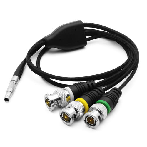 Connect the RED 3BNC-to-00B Sync Cable to your RED camera's SYNC port to break out timecode, genlock, and start/stop trigger to three separate BNC connectors.