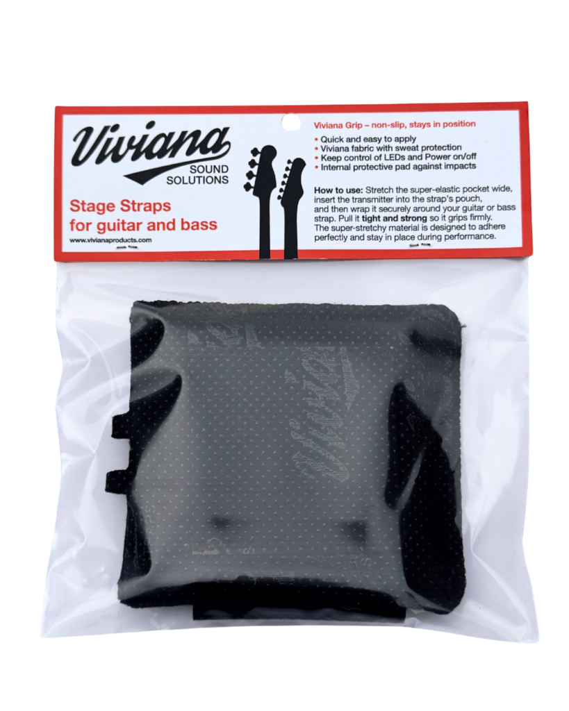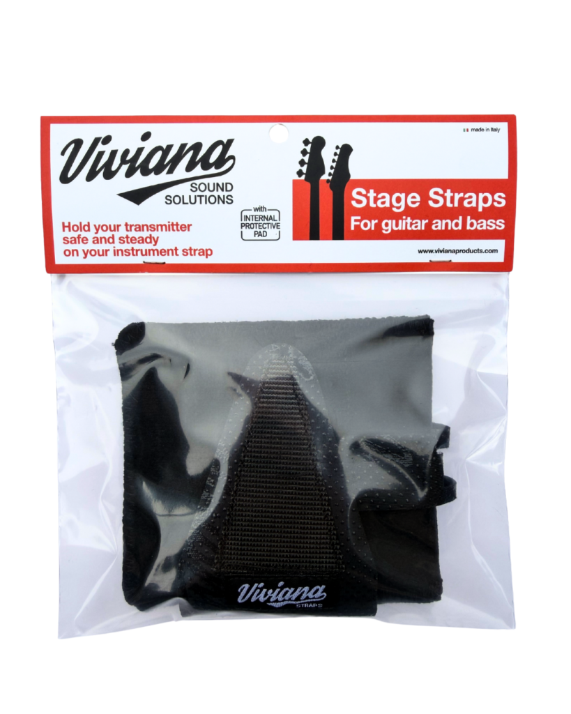 Viviana Stage Straps for Guitar and Bass is a unique, custom-made strap designed to hold your transmitter securely on your guitar or bass strap — no tape or Velcro needed.