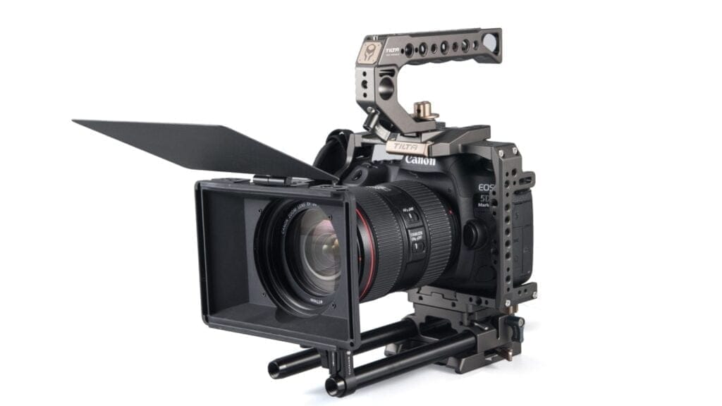 Tiltan Tiltaing Mini Matte Box on kevyt (140 g) ja edullinen valinta DSLR- ja peilittömien kameroiden käyttäjille. Se auttaa suojaamaan linssiä ja vähentää flarea.