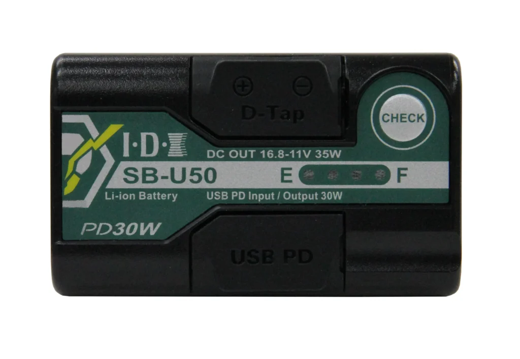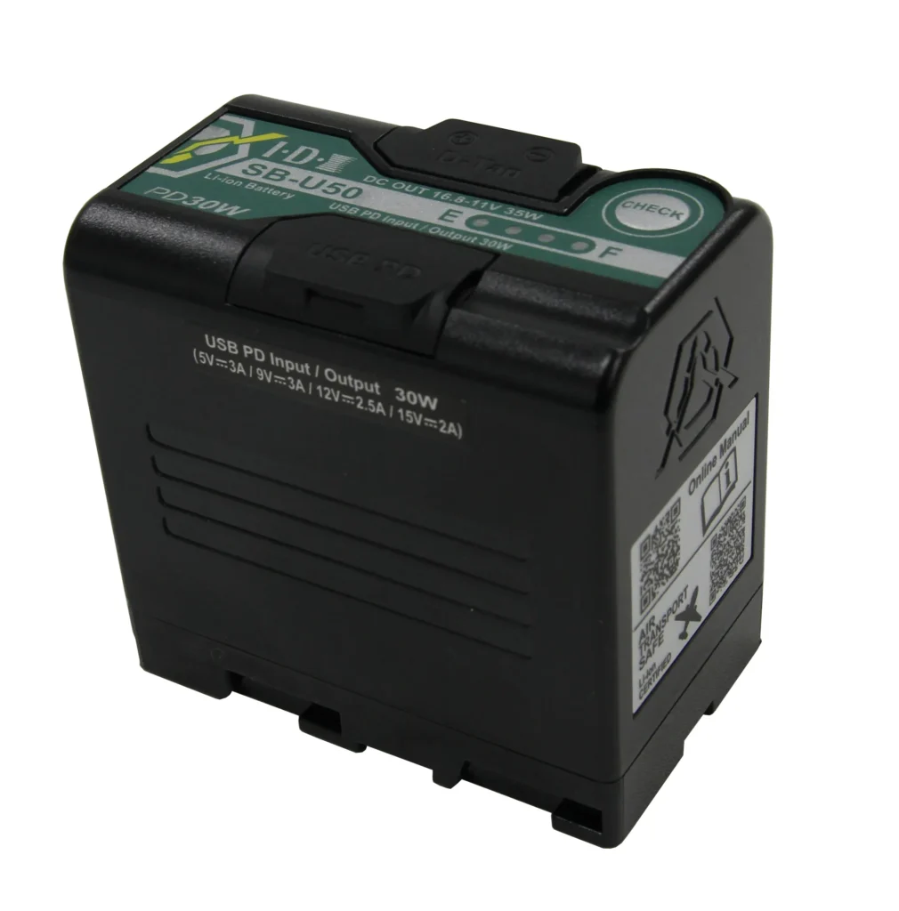 High-capacity Lithium Ion battery for Sony BP-U mount cameras, such as PXW-FX9/9, FS5/FS7, and PXW/PMW-series camcorder, and more. The battery features a 14.4V D-Tap output and also USB Type-C PD input/output that can charge the battery using an optional charger.