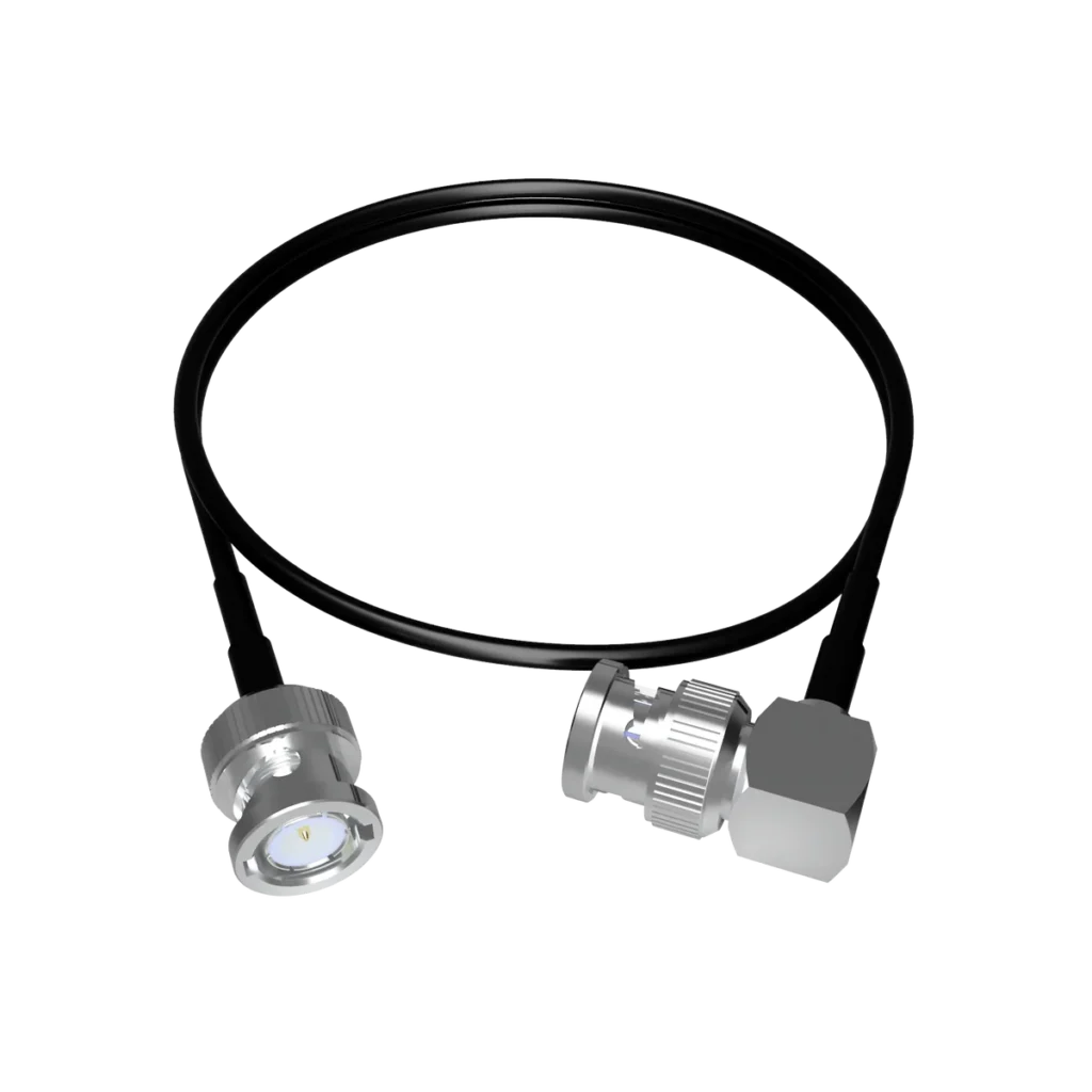 This 500mm BNC to BNC right-angle RF cable is designed for professional audio and wireless receiver applications. It features high-quality RG-174/U coaxial cable for optimal signal integrity and minimal loss. The right-angle BNC connectors on both ends offer flexible installation in tight or space-constrained environments.