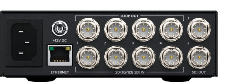 Tiny SD, HD and Ultra HD video router has 4 x 12G-SDI inputs with a loop output for each input as well as 2 dedicated 12G-SDI outputs. It includes a front panel router control panel that also has an emergency 12G-SDI input and USB-C webcam video out!