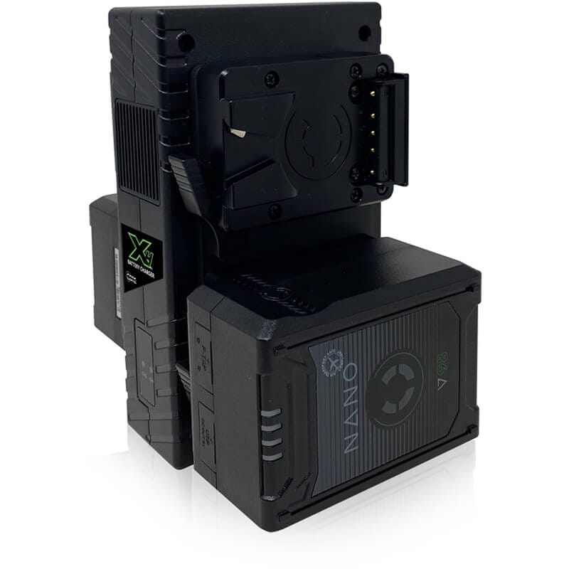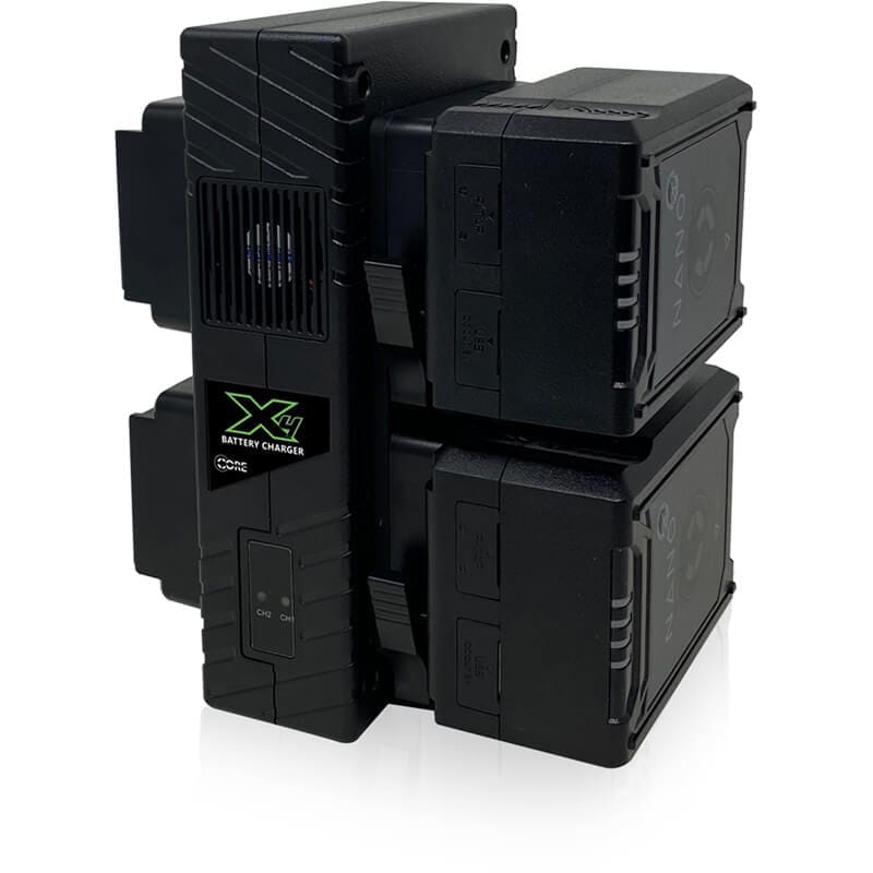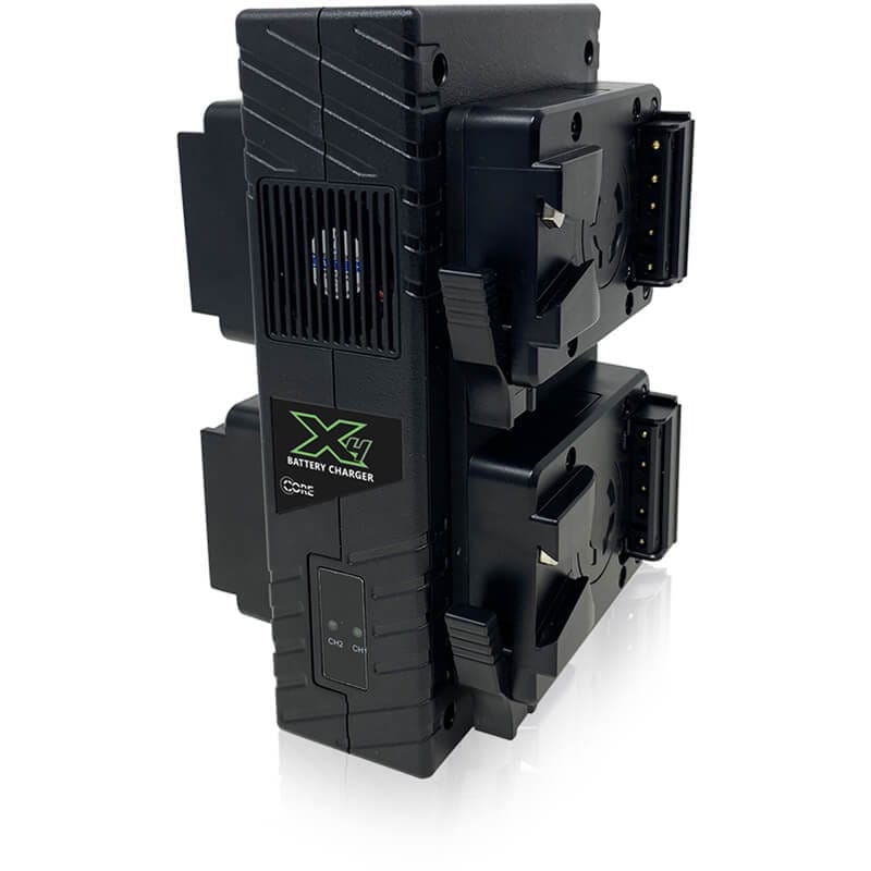 The Compact V-mount 4-position Fast Charger X4 is a compact charger with an upright design and a lightweight, plastic housing. It offers simultaneous 2.6A charging as well as a single bay per side fast charge. When only needing to charge one battery pack on each side, the rapid charge will charge the pack at 2.6A (one 98wh pack in under 2.5hrs). When two packs are placed on either side, the charge will charge the lesser charged pack up to the same level as the other, then charge both at 2.6A current combined.