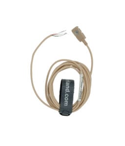 Single earphone with swivel ear hook. This allows you to wear it on either the left or right ear. The 3.5mm mono plug is a molded right angle and is ideal for a Comtek or IFB feed.