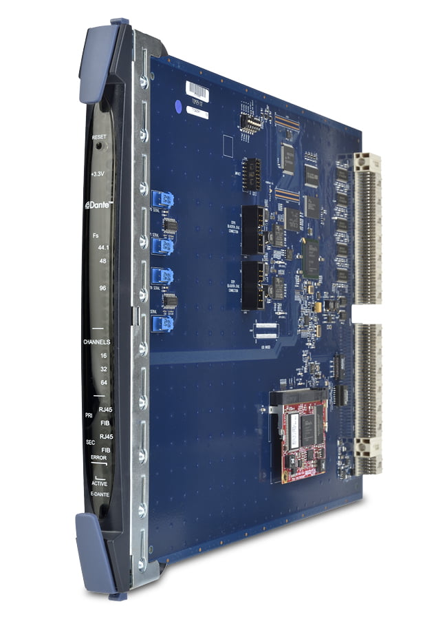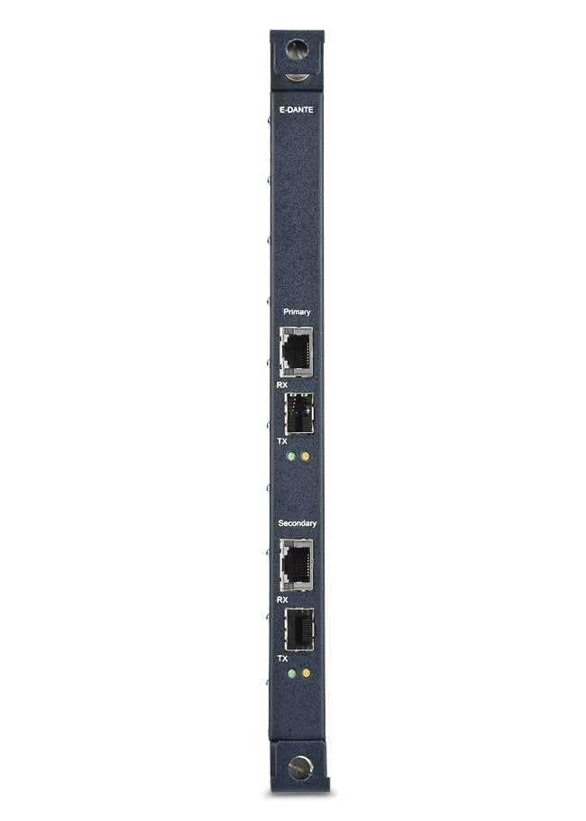 The E-DANTE64-HX card can operate in one of the multiple DANTE configurations, providing an Eclipse® HX with 16, 32 or 64 channels of low latency, high quality AoIP connectivity. Additionally, it can support all of the standard sample frequencies for professional use, including