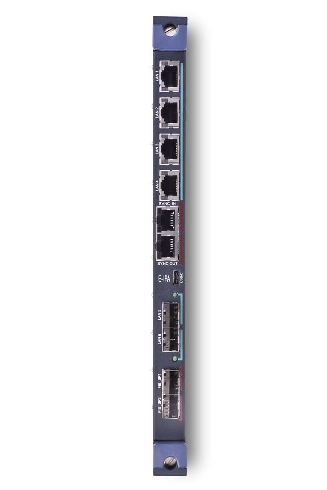The E-IPA-HX is a high density IP interface card that supports up to 64 Clear-Com intercom devices. The interface card can be used with the Eclipse HX-Delta Lite, HX-Delta, HX-Median, and HX-Omega matrix frames. Eclipse HX Configuration Software (EHX™) configures each port for its intended application and provides a dedicated IP Manager screen to monitor connections and add users. The E-IPA-HX card also supports SMPTE ST2110 and AES67 connectivity.