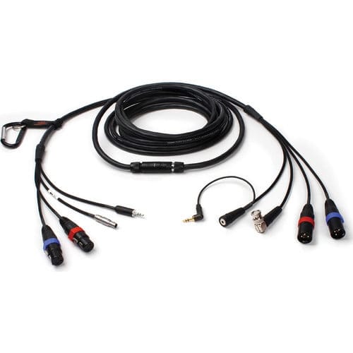 The cable package contains a carabiner to help wrap the extra cable easier and to attach the cable either to on-set equipment or a belt.
