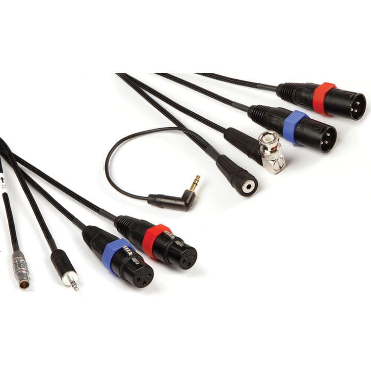 The cable transmits stereo audio over a pair of balanced XLR connectors and uses a dedicated 5-pin LEMO M to BNC RA plug to transmit timecode from a Sound Devices 633 recorder to a camera. The cable also features a stereo return for sending the signal back to the camera.