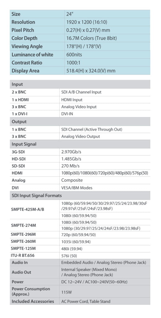 24″ Full HD Display for Non-Critical Broadcast Monitoring