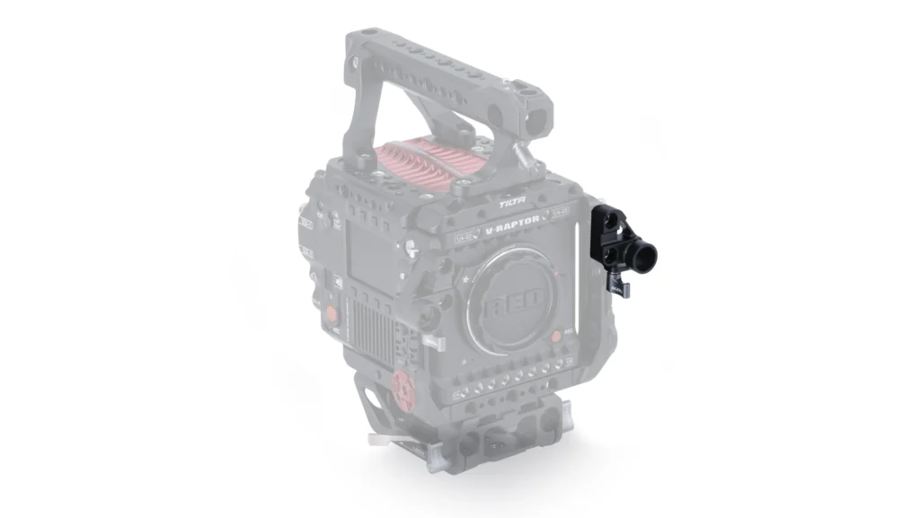 This Right Side Single Rod Holder mounts along the side of the Full Camera Cage for RED V-RAPTOR.