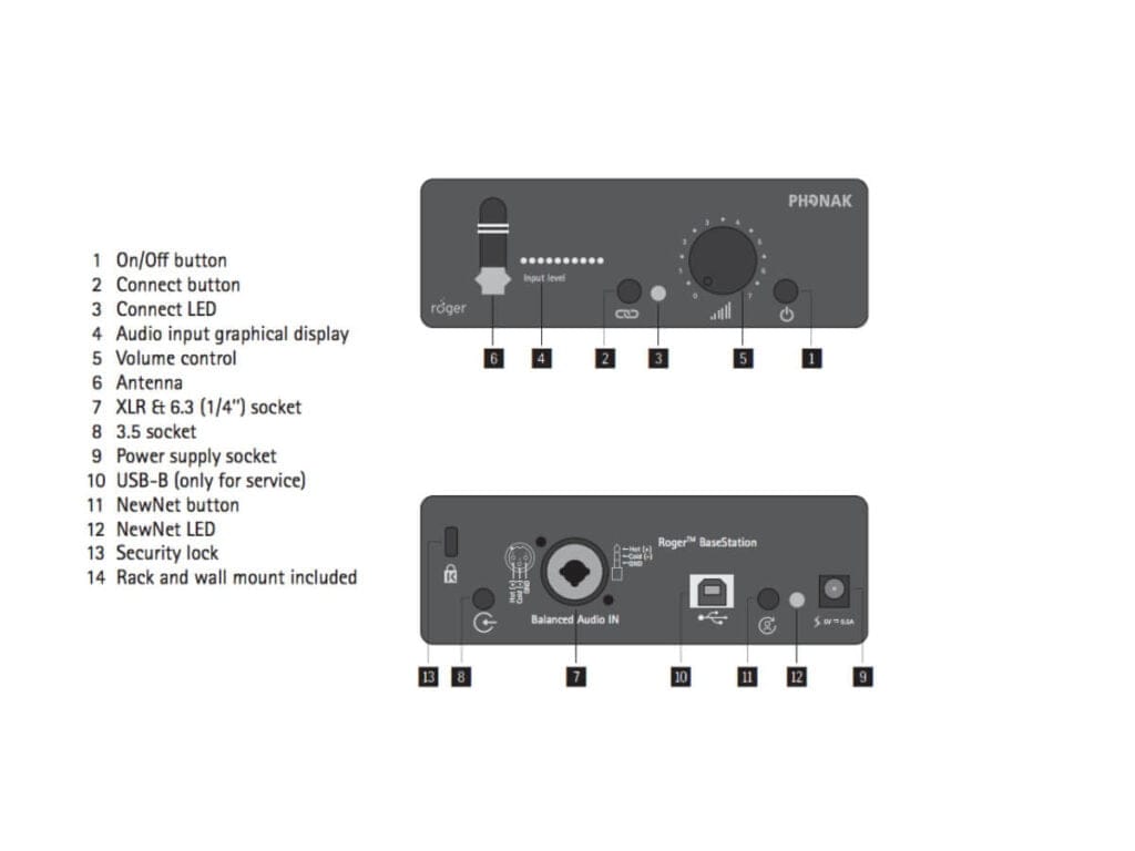 Roger BaseStation is a stationary Roger transmitter designed to broadcast audio from a sound system. Roger BaseStation transmits to Roger (02) receivers and Roger DigiMaster