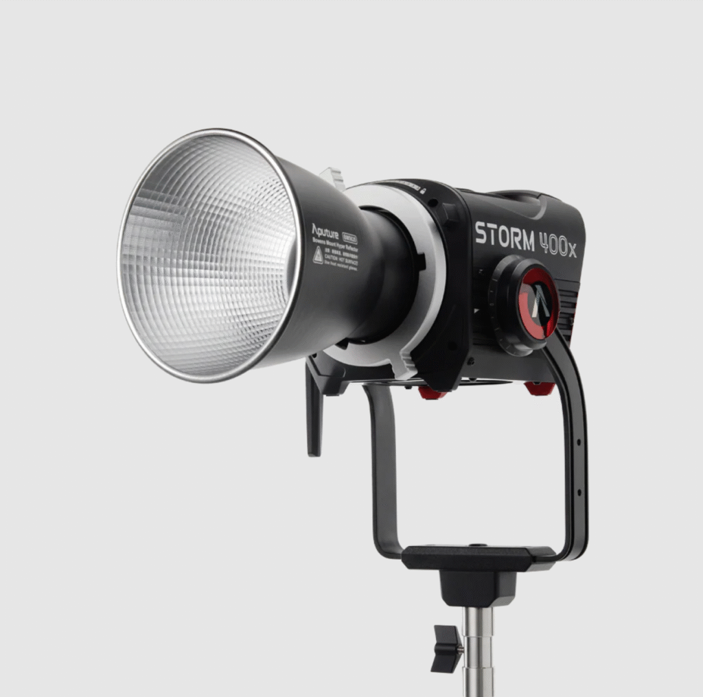 - BLAIR: The Best Tunable White Light: The Aputure STORM 400x utilizes the BLAIR (Blue/Lime/Amber/Indigo/Red) light engine, delivering the highest quality white light and greatest +/- green adjustability of any LED technology. The BLAIR light engine’s indigo emitters enhance fluorescing materials like natural daylight and tungsten sources.