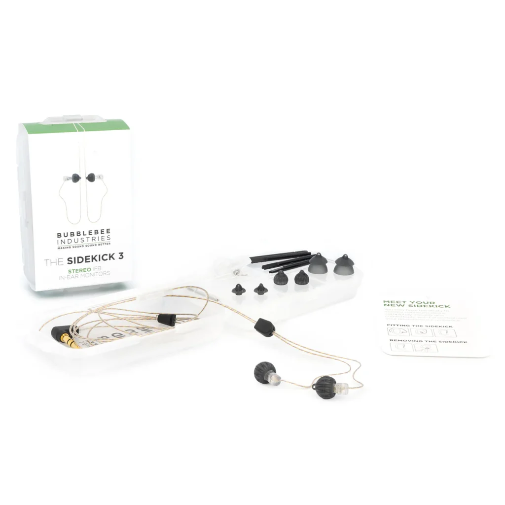 The ultimate communications IFB stereo ear-piece for comfort and speech intelligibility has received a well-deserved upgrade. The Bubblebee Sidekick 3 In-Ear IFB Monitor is a virtually invisible IFB cuing & communications earpiece designed to deliver a superior experience in invisibility, comfort and sound intelligibility, featuring the most advanced driver technology ever in such a small earpiece. The new durable and resilient drivers have been tested with up to 3 x higher tolerances than previous versions.