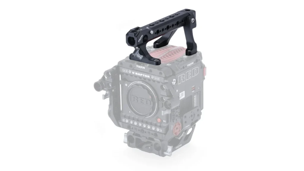 This Top Handle attaches to both the Top Plate and Front Top Plate for RED V-RAPTOR which creates a secure point of contact for handling and operating your camera while also providing additional mounting points for accessories.