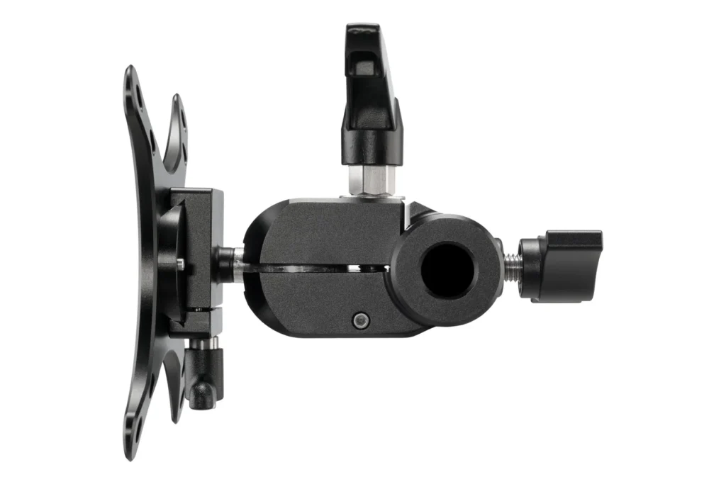 The Ultra QR Monitor Mount (Baby Pin, C-Stand) is an articulating monitor mount for securely attaching production monitors up to 45 lbs (20kg) to a C-Stand or 5/8” (15mm) Male Baby Pin. Integrated ARCA Swiss dovetail clamp allows for quick release (QR) of the monitor from the C-Stand.