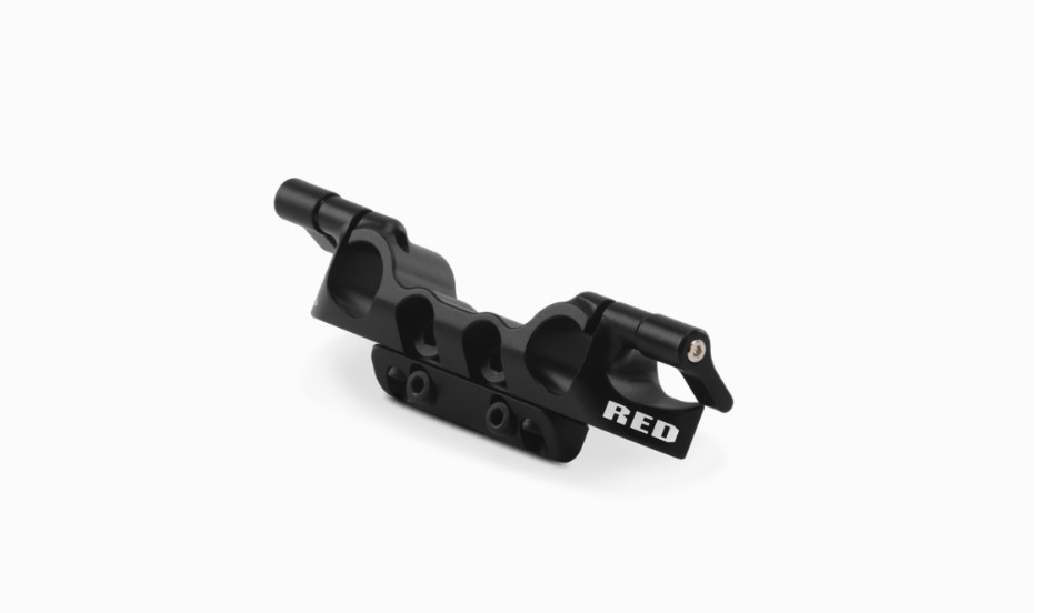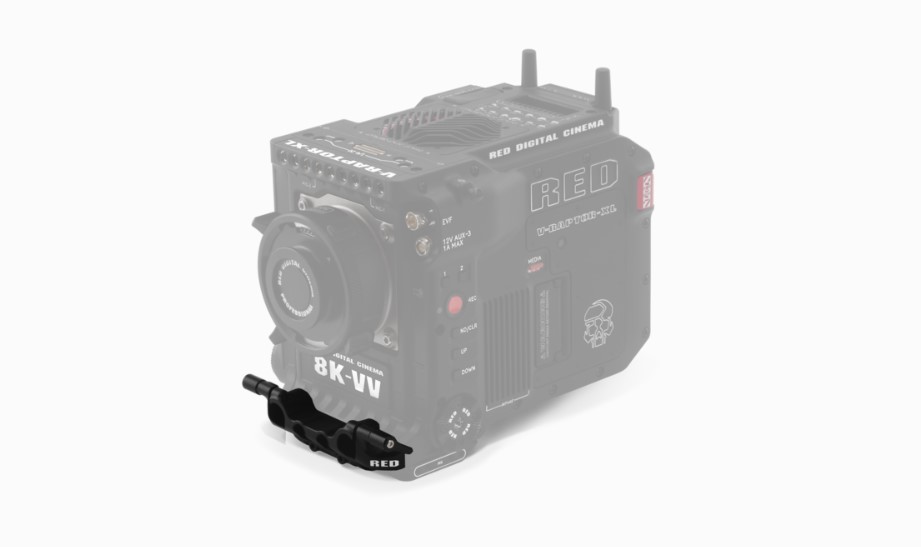The V-RAPTOR® XL Bottom 15 mm Rod Support Bracket securely attaches to the bottom of the camera or to the V-RAPTOR® XL Riser Plate, and it provides two 15 mm LWS spaced rod clamps, allowing for mounting of accessories such as matte boxes and focus, iris, zoom motors.